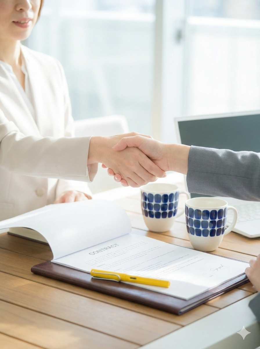 内容に十分ご納得いただけましたら、正式なご契約となります。 あなたの会社を支えるパートナーとして、誠実かつ情熱を持って、現場に即した支援を継続してまいります。